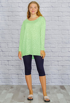Красивая женственная туника свободного силуета. Спинка немного удлиненная, широкий округлый вырез горловины. Модель выполнена из ткани "деворе", рисунком и фактурой напоминающей витраж. |