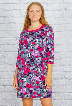 Туника прямого кроя из качественного шелковистого трикотажа - интерлока. Рукав 3/4, два накладных кармана, по бокам небольшие разрезы. |