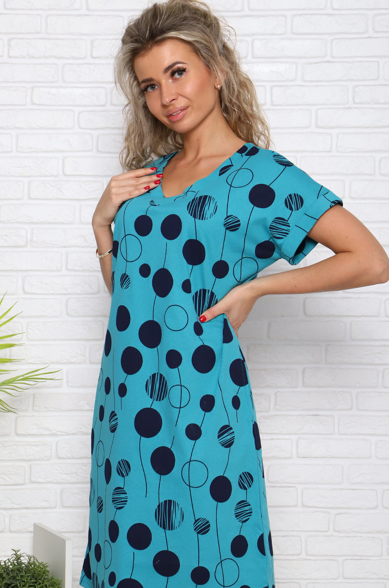 | Описание: | Симпатичная хлопковая туника для дома. Модель прямого кроя, в стиле оверсайз, рукав цельнокроенный, с подворотом. Женственный и очень стильный V-вырез, в боковых швах - карманы. Ткань кулирка - комфортная, мягкая и приятная к телу. |