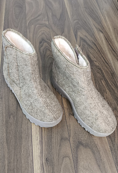 | Описание: | Мужские войлочные ботинки с нетканным утеплителем, застежка - "липучка". Подошва ПВХ. Производство Россия. |