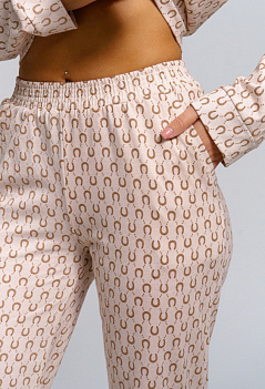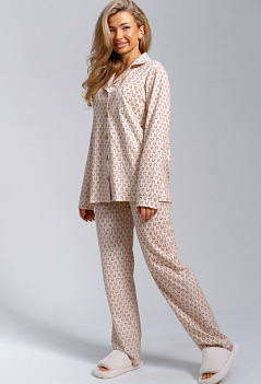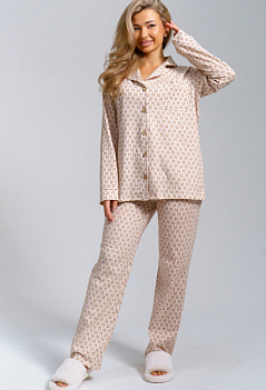 Очень популярная и стильная модель домашнего костюма-пижамки на пуговицах. Рубашка с отложным воротником и длинным рукавом на манжете, на груди накладной кармашек. Брючки прямые без манжет, с боковыми удобными карманами, пояс на широкой резинке. Ткань кулирка высокого качества, очень приятная к телу, мягкая. |