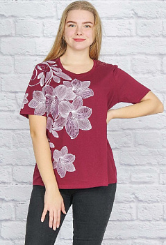 Описание: Хлопковая футболка с цветочным печатным принтом придаёт женственности и романтичности. Модель классического прямого кроя.