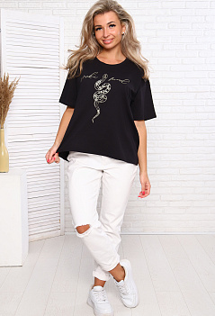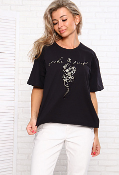 Самая популярная, универсальная, практичная и удобная вещь в гардеробе - футболка! Одна из топовых моделей: футболка размера оверсайз. На полочке эффектный печатный принт. Модный удлинённый рукав, спущенное плечо, свободный крой - всё собрано в этой модели. С такой футболкой вы создадите модный образ на каждый день! Ткань кулирка. |