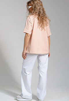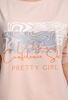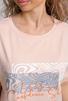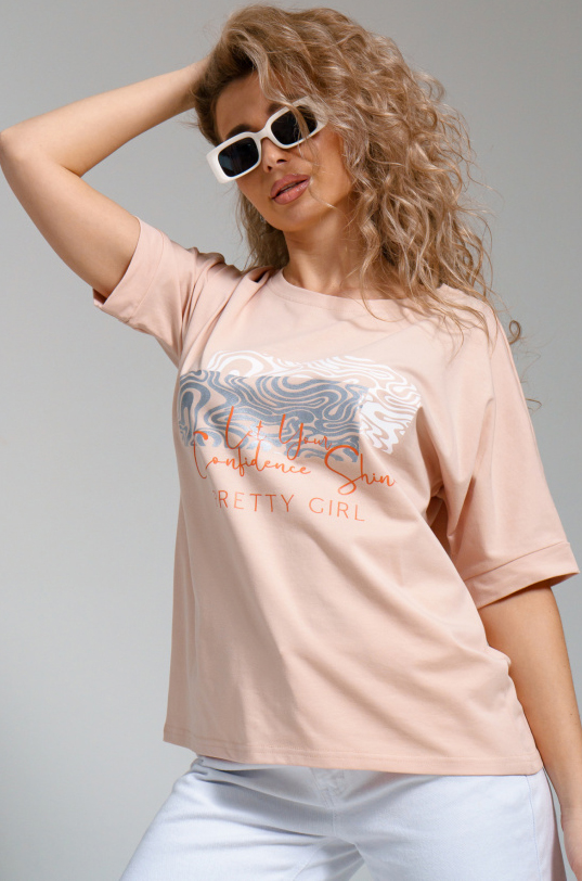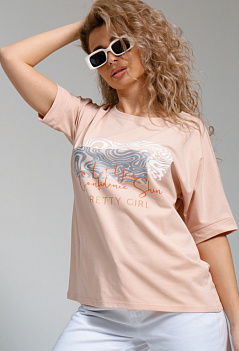 Женская футболка оверсайз с цельнокроеным рукавом на манжете. Стильный принт на полочке придает ей оригинальность и выделяет на фоне однообразных вещей. Спинка немного удлиненная. Незаменимая летом вещь в сочетании и с джинсами, и с юбкой. Ткань - эластичная, практичная и приятная к телу кулирка с лайкрой. |