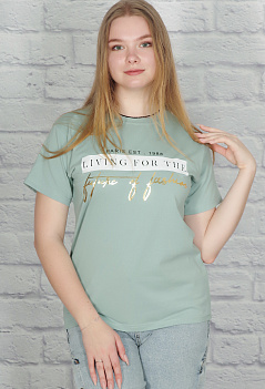 Красивая модель женской футболки со стильной печатью. Незаменимая летом вещь в сочетании и с джинсами, и с юбкой. Ткань - эластичная, практичная и приятная к телу кулирка с лайкрой. |