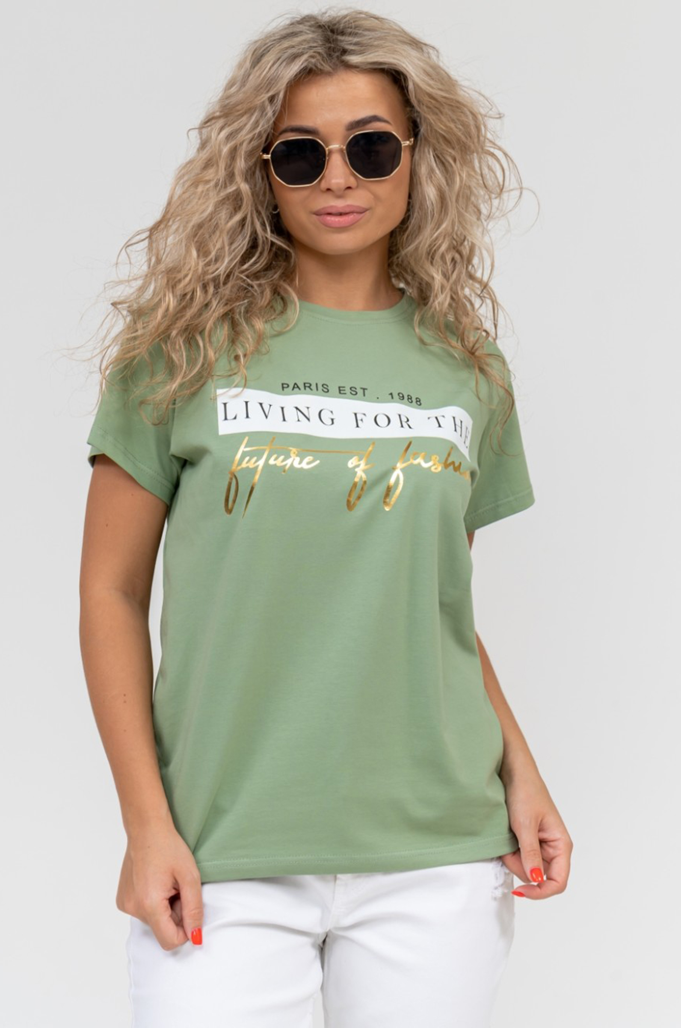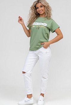 Красивая модель женской футболки со стильной печатью. Незаменимая летом вещь в сочетании и с джинсами, и с юбкой. Ткань - эластичная, практичная и приятная к телу кулирка с лайкрой. |