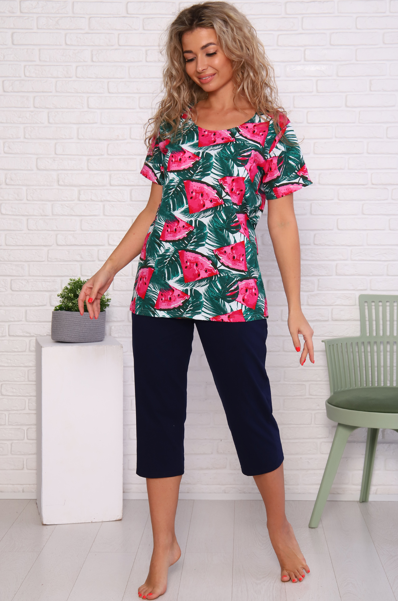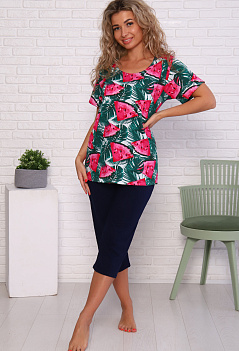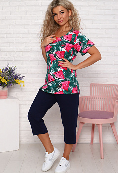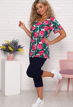 | Описание: | Яркий, стильный и удобный хлопковый костюм для дома и отдыха. Футболка прямого кроя, рукав втачной. Бриджи свободные, пояс на резинке. Ткань кулирка. |