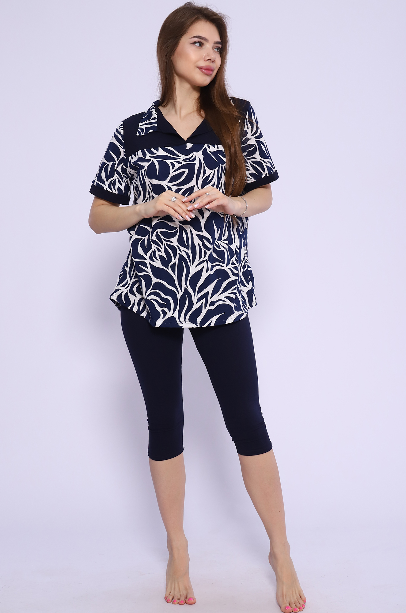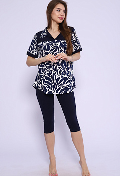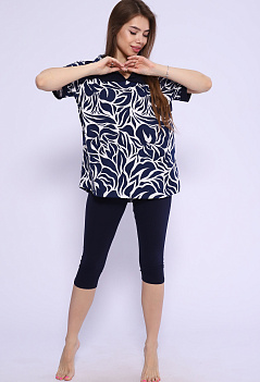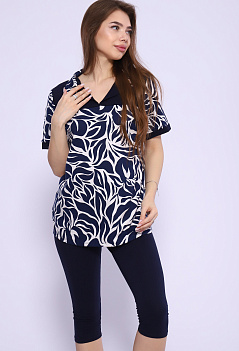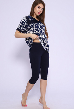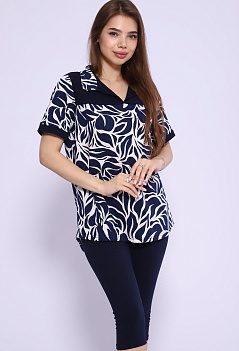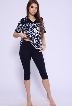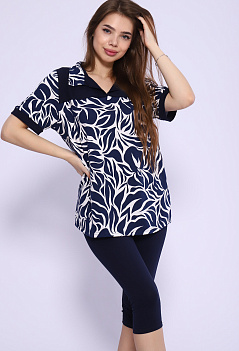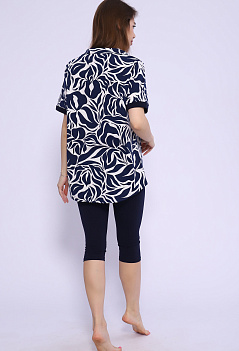 Удобный, стильный и невероятно женственный костюм для повседневного образа. Туника-рубашка с отрезной кокеткой и отложным воротником. Модель с удлинённой спинкой. Бриджи облегающие, с комфортной посадкой, длина ниже колена, пояс на резинке. Ткань: туника - кулирка; бриджи - кулирка с лайкрой. |
