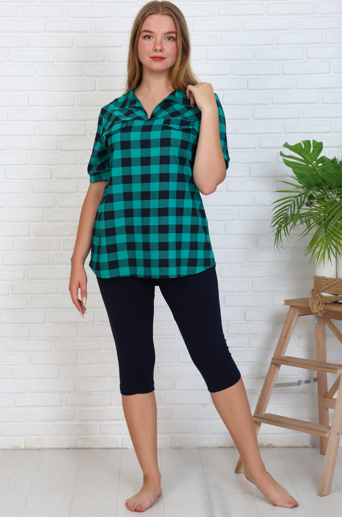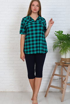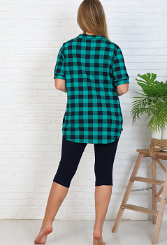 Удобный, стильный и невероятно женственный костюм для повседневного образа. Туника-рубашка с отрезной кокеткой и отложным воротником, на груди карманные клапаны. Модель с удлинённой спинкой. Бриджи облегающие, с комфортной посадкой, длина ниже колена, пояс на резинке. Ткань: туника - кулирка; бриджи - кулирка с лайкрой. |