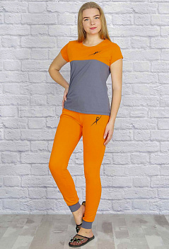 Классный, яркий спортивный костюм из легкого хлопка. Облегающие брюки на манжете с карманами, футболка с коротким рукавом и стильно подобраные сочетания цветов - будьте в тренде с нами в новом сезоне! |