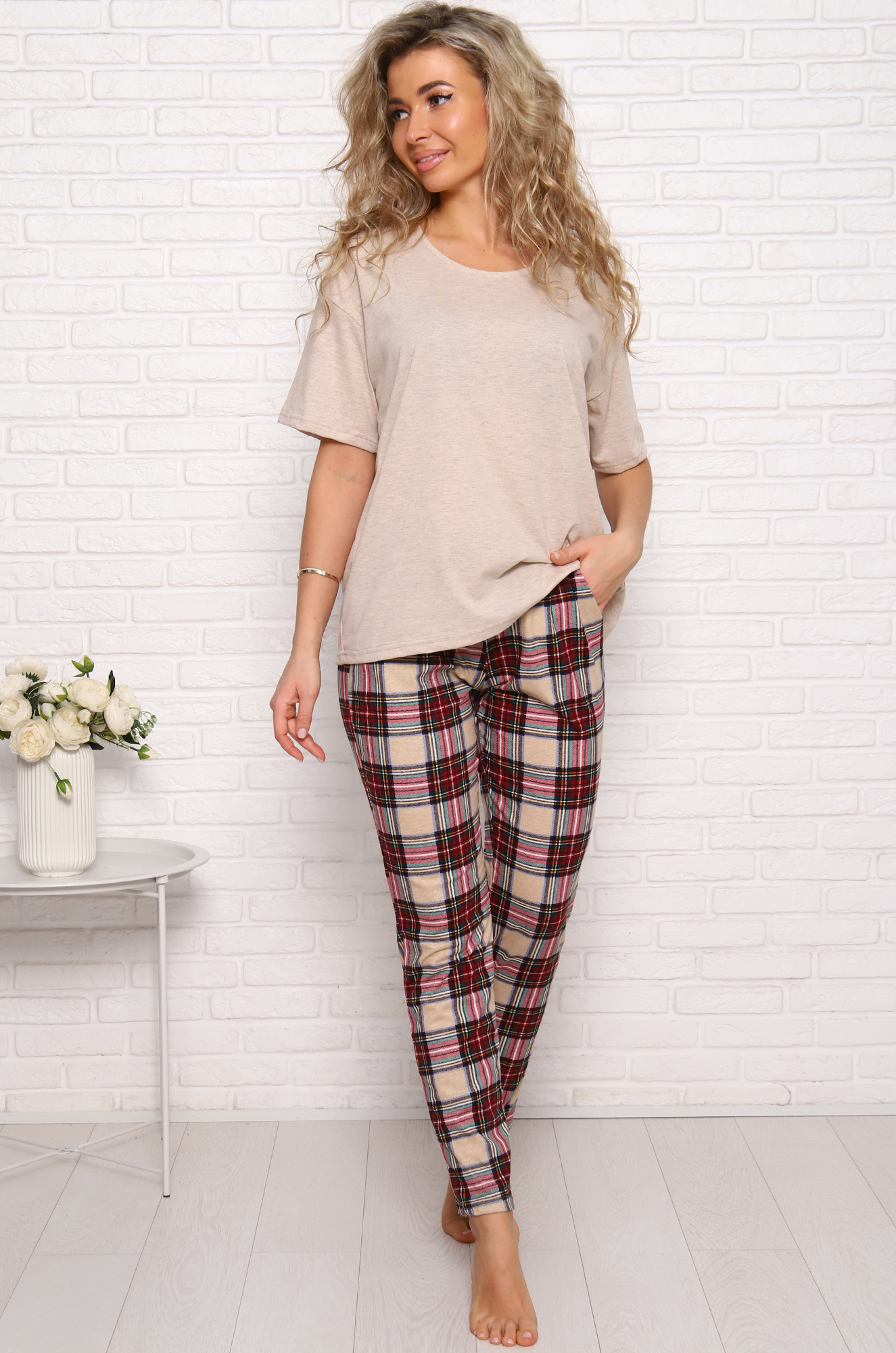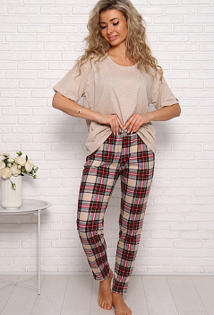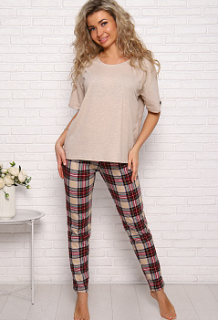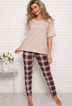 Симпатичный хлопковый костюм для дома и отдыха. Футболка в стиле оверсайз, модный удлинённый рукав, спущенное плечо, на рукаве стильная нашивка. Модель брюк зауженная, с комфортной посадкой, и удобными боковыми карманами, пояс на широкой резинке. Ткань для футболки: кулирка с пэ нитью - лёгкая, мягкая, приятная к телу, для брюк - кулирка 100% хлопок. |