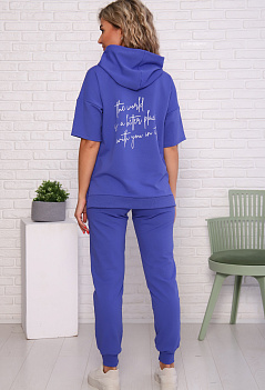 | Описание: | Женский костюм в спортивном стиле. Футболка свободного кроя, с капюшоном, рукав удлинённый, плечевой шов спущенный, карман-кенгуру. Брюки на эластичном манжете, пояс на широкой резинке, комфортная посадка. Ткань футер с лайкрой. |