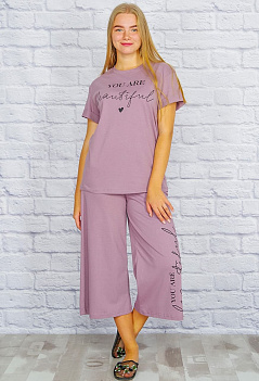 Каждая женщина хочет выглядеть красиво и модно даже дома! Эта модель преобразит ваш образ и поднимет настроение. А домашние хлопоты "превратятся" в удовольствие! Футболка прямого свободного кроя с печатным принтом, рукава с подворотом. Брюки-кюлоты свобные и удобные, с боковыми карманами, пояс на широкой резинке. И завершает образ повторяющийся с футболки рисунок. Просто, гармонично, комфортно и стильно! Идеальный вариант для дома. Ткань кулирка. |