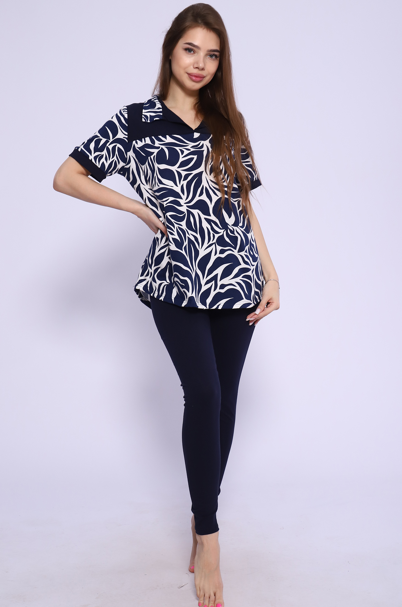 Удобный, стильный и невероятно женственный костюм для повседневного образа. Туника-рубашка с отрезной кокеткой и отложным воротником. Модель с удлинённой спинкой, комфортный рукав 3/4. Леггинсы облегающие, пояс на комфортной, широкой резинке. Ткань: туника - кулирка; леггинсы - кулирка с лайкрой. |