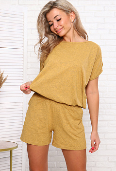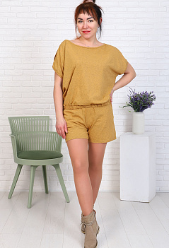 Очень симпатичный и стильный костюм для обворожительного образа. Футболка укороченной модели, свободного оригинального кроя, с открытыми плечами, вырез горловины - "лодочкой", рукав цельнокроенный, низ на резиночке. Шорты комфортной посадки, с удобными боковыми карманами, пояс на широкой резинке. Такой универсальный костюм подойдёт и для отдыха, и для дома. Ткань кулирка меланжированная, с добавлением пэ нити - лёгкая, мягкая, идеальный вариант на лето. |