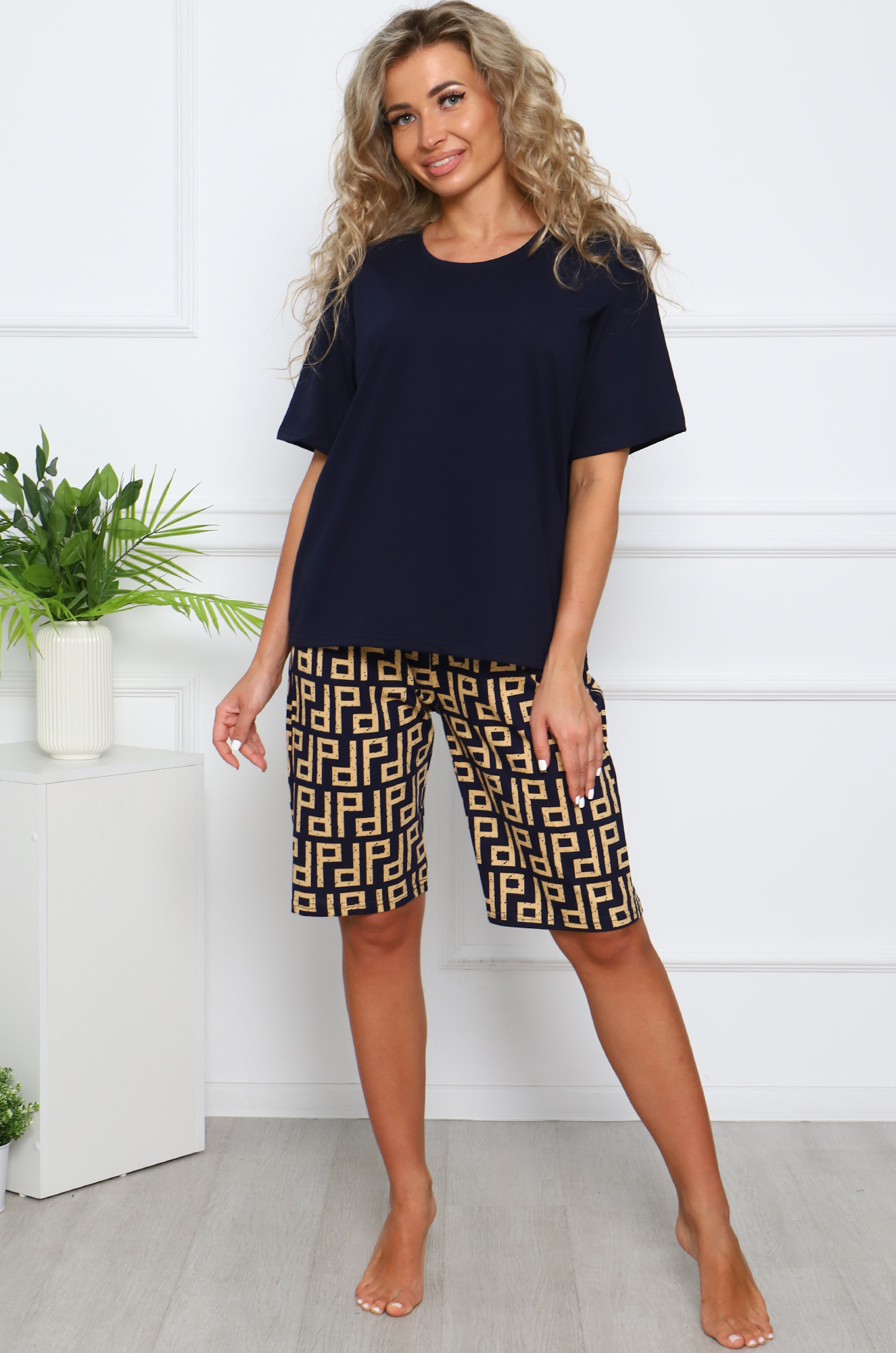 Хлопковый костюм для дома и отдыха. Футболка однотонная в стиле оверсайз, со спущенным плечом. Шорты-бермуды комфортной длины, пояс на широкой резинке, прострочен на спец. машине, удобные боковые карманы. Ткань кулирка - мягкая и приятная к телу. |